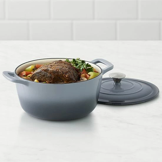 This cast-iron Dutch oven by Food Network will be your go to for braises, stews, chilis or anything that needs long, gentle heat.